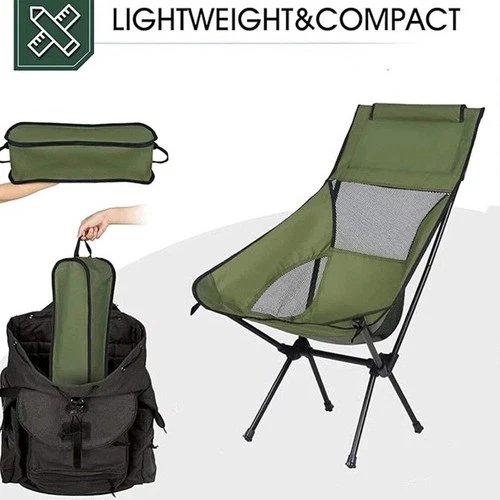 Folding High Back Camping Chair With Head Support Stable Portable Lightweight UK