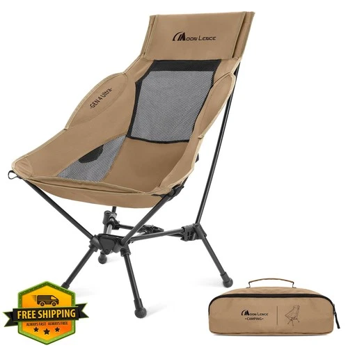 MOON LENCE High Back Camping Chair 330lb Khaki Portable Wide Seat