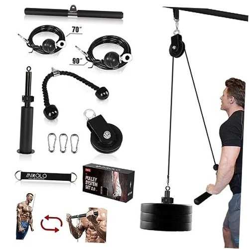 SERTT LAT and Lift Pulley System Home Gym Cable Machine Attachment Set Black