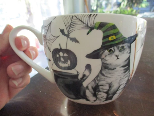 PORTOBELLO BY DESIGN BONE CHINA CREEPY CAT HALLOWEEN BONE CHINA COFFEE CUP MUG