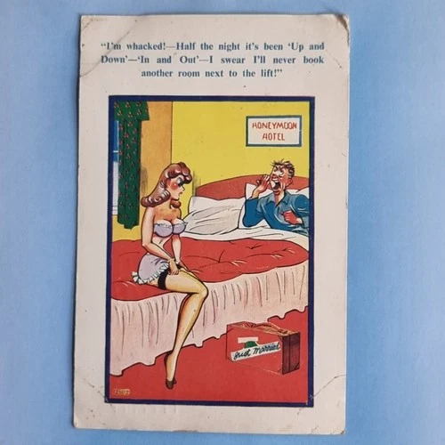 Comic Postcard 1963 Honeymoon Hotel Lingerie Stocking Tops Up Down In Out Lift