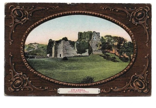 Antique Oystermouth Castle Swansea Wales Postcard - Decorative Wood Frame Border