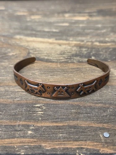 Vintage Copper Bell Trading Post Cuff Bracelet Southwestern Style Pressed Design