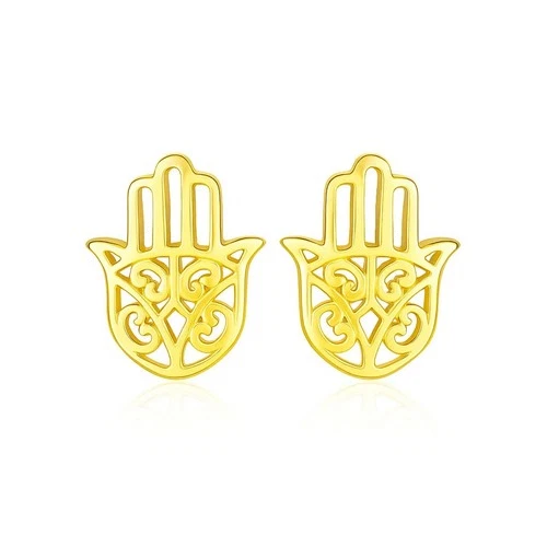 14k Yellow Gold Polished Hand of Hamsa Post Earrings