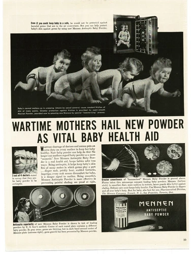 1943 Mennen Baby Powder Crawling Baby Time-Lapse Vintage Print Ad