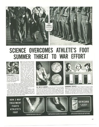 1943 Mennen Quinsana Foot Powder WW2 Print Ad Soldiers Marching Athlete's Foot