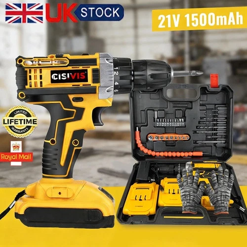 2 Battery 21V Cordless Drill Combi Driver High Power Electric Screwdriver Set