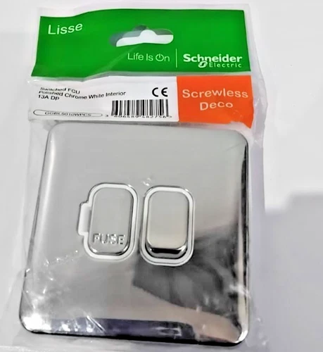 Schneider 13A Fuse Spur Switched Lisse Fuse Connection Unit Polished Chrome