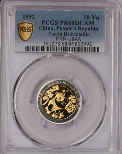 1992 Bi-Metallic Panda 1/10 oz. 10 Yuan PCGS PR68 DCAM. Rare, mintage 2,000!
