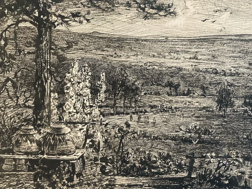 Very Nice Drawing Ink 1880 Per Cecil Gordon Lawson The Minister’S Garden Old