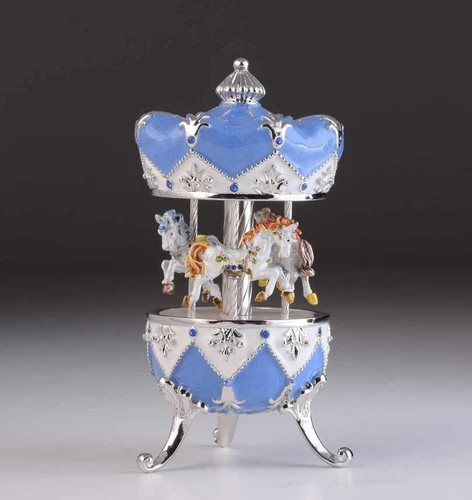 Egg horse Carousel Signed Keren Kopal wind up music box blue stones-heavy- works