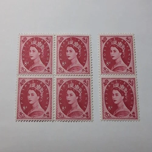 6x 1952-1971 QEII 8d Eight Pence Queen Pink Lot of Six Unused GB UK Stamps MNH