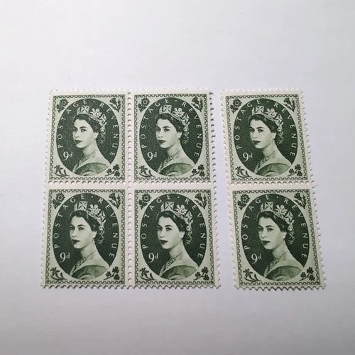 6x 1952-1971 QEII 9d Nine Pence Queen Green Lot of Six Unused GB UK Stamps MNH