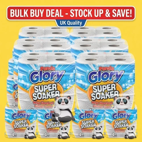 24 x Kitchen Roll Towel 2 Ply Per Roll PANDA GLORY - Splash Absorbent Printed
