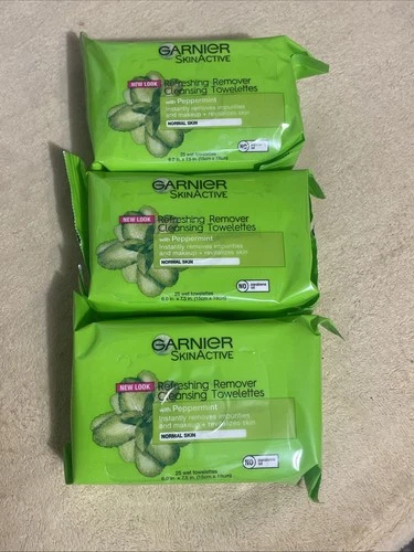 Lot of 3 Garnier SkinActive Makeup Remover Wipes Cleansing Towelettes w/peppermt