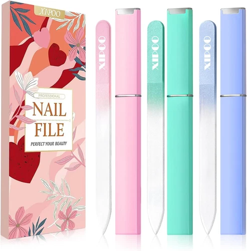 Nail File Glass Nail File 3 Pack Premium Glass Nail File with Case Crystal Na...