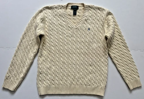 Vtg LAUREN RALPH LAUREN Sweater Womens Cable Knit Old Money-Sz M Butter Yellow