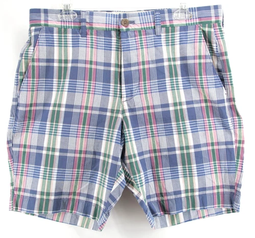 J Crew Factory Mens 33 9" Inseam Blue Red Green Plaid Shorts NWT
