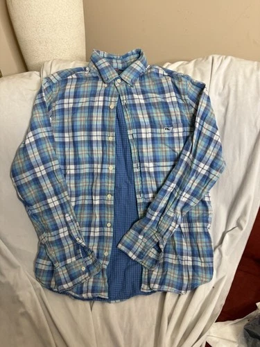 VINEYARD VINES Mens M Check Soft Flannel Double Layer Whale Logo Shirt