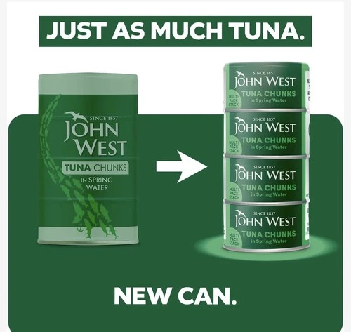 John West Tuna Chunks in Spring Water 48 x125g (102g Drained) new ecotwist pack