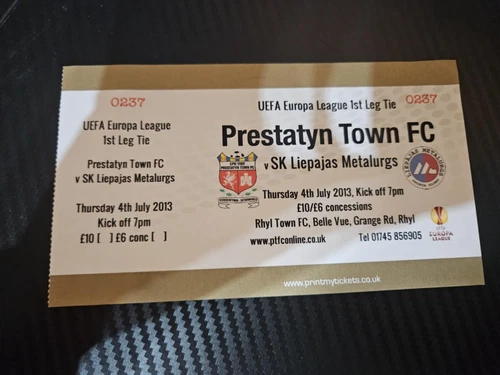 TICKET: Prestatyn Town v Liepajas Metalurgs (UEFA Europa League) 2013/2014