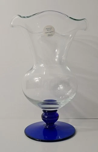 Vintage Princess House Crystal Sapphire Vase Handblown Glass Cobalt Blue Base