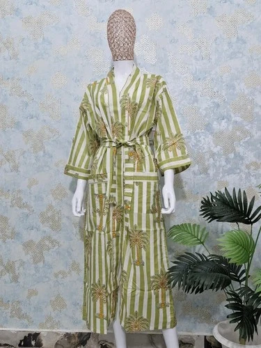 Indian Green Palm Tree Cotton Robes Long Kimonos Sleepwear Night Kimono robes US