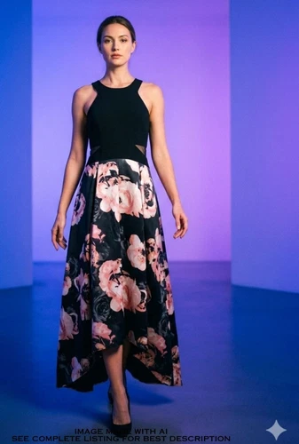 Xscape Formal Dress 12 Halter Neck Asymmetric Cutouts Detachable Bustle Floral