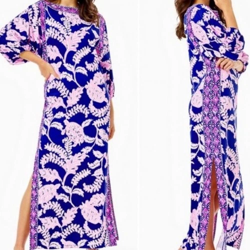 Lilly Pulitzer Maxi Dress 10 Tropical Medium Long Dress Turtle Resort Cruise 70s