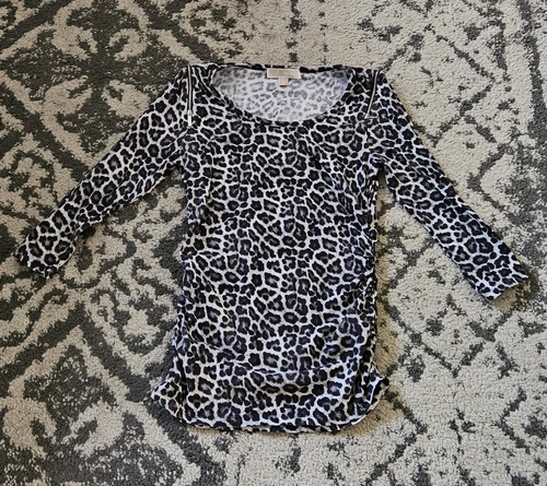Michael Kors Snow Leopard Print Top Zipper Shoulder S