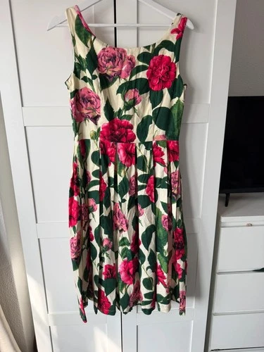 Lindy Bop size 12 Romantic Rose Print Dress 50's vintage style wedding guest