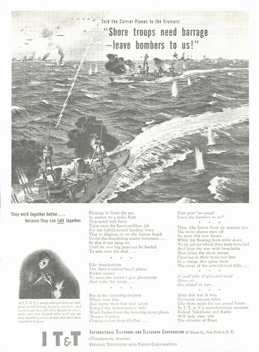 Navy radio vintage battleship cruiser bomber military battle 1943 WWII print ad