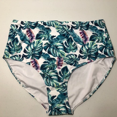 B2PRITY Tropical Bikini Tankini Swimsuit Bottom Women size L White Blue Palm NWT