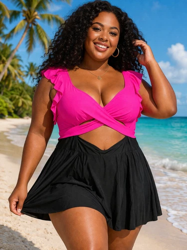 B2PRITY One Piece Swimsuit Swim Skirt 22W Pink Black Cutout Ruffle Plus Size NWT