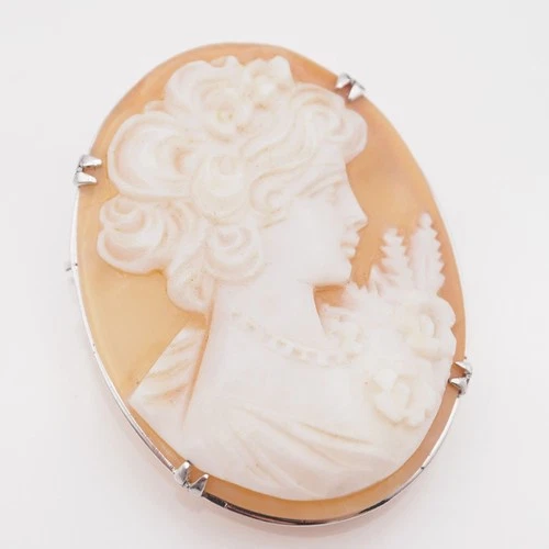 R124 Shell Cameo SILVER Engraved Female Profile Design Silver Vintage
