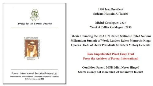 1999 USA UN Liberia Iraq President Saddam Hussein Al Takriti Rare Proof MNH