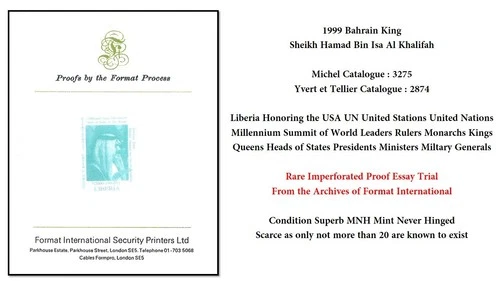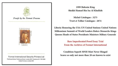 1999 USA UN Liberia Bahrain King Sheikh Hamad Bin Isa Al Khalifah Rare Proof MNH