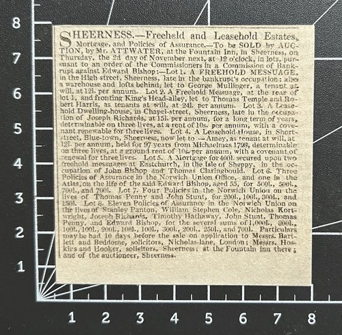 Freehold & Leasehold Property - Sheerness - Kent For Sale - 1826 Cutting 501