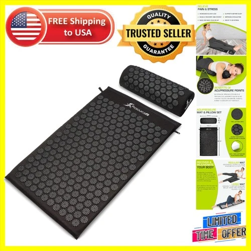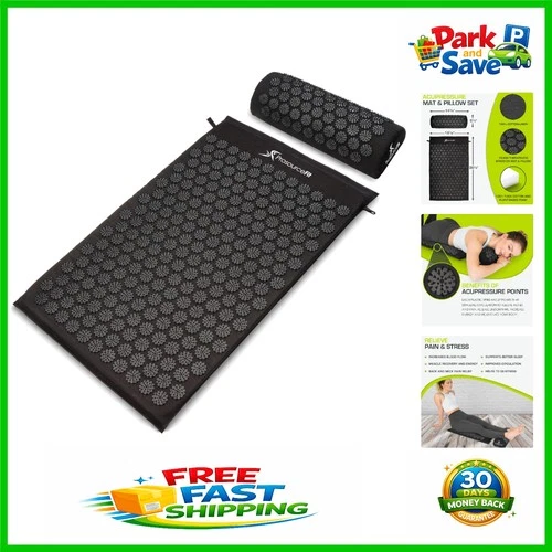 Large Acupressure Mat & Pillow Set for Relaxation and Muscle Recovery - Black
