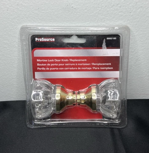 ProSource Mortise Glass Crystal Lock Door Knob Replacement Polished Brass Finish