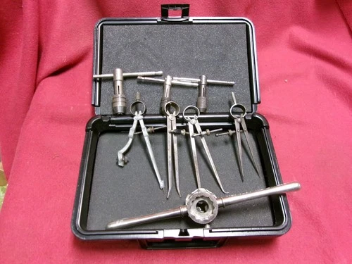 Vintage lot of used machinist tools , tap handles, die handle, protractor -more