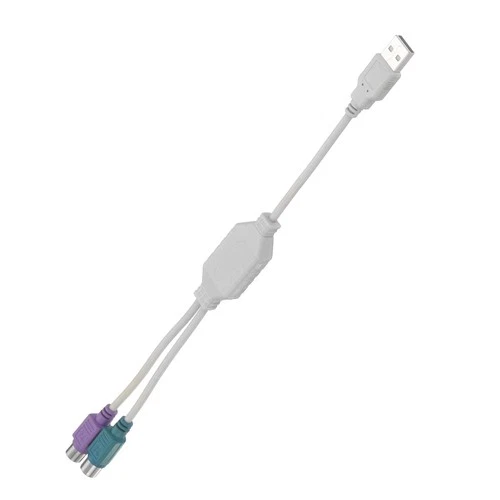 USB to PS/2 Adapter, USB A Male to Dual PS/2 Female Converter, White