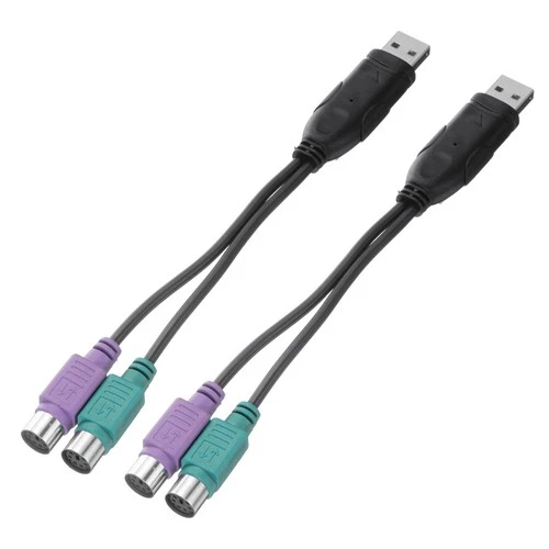 2 Pcs USB to PS/2 Adapter, USB A Male to Dual PS/2 Female Converter, Black