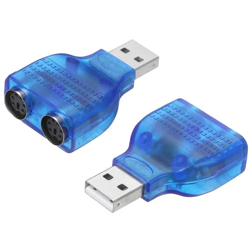 2 Pcs USB to PS/2 Adapter, Plastic USB A Male to Dual PS/2 Female Converter Blue