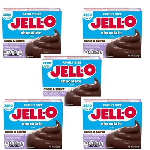 LOT 5 pk JELL-O Cook & Serve ZERO SUGAR Chocolate Pudding Mix Family Size 2 oz