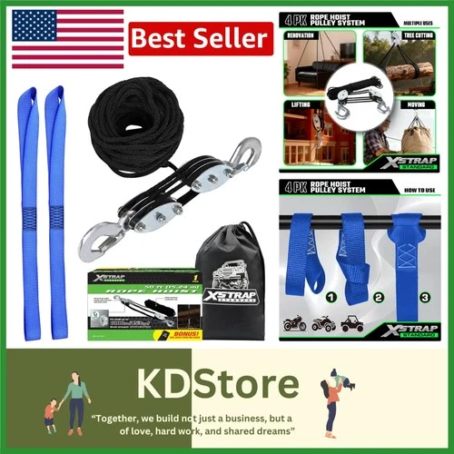 Durable 50FT Block and Tackle Pulley System - 2000 LB Breaking Strength