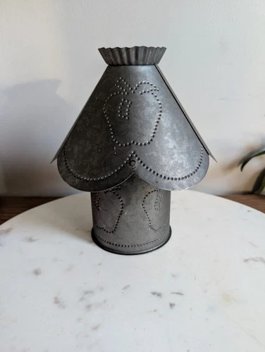 Rustic Galvanized Punched Tin Lantern Tea Light Candle Holder Apple Farmhouse
