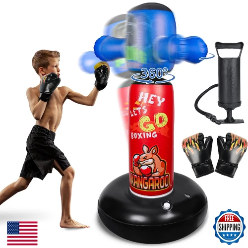 Punching Bag for Kids with 360° Rotating Head, Hyperzoo 63" Heavy-Duty Inflatabl