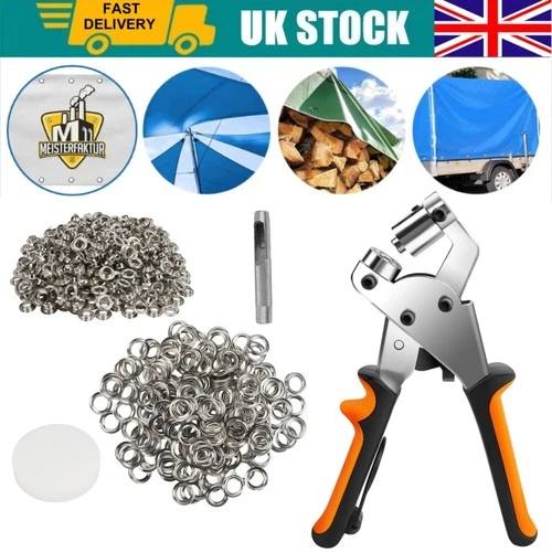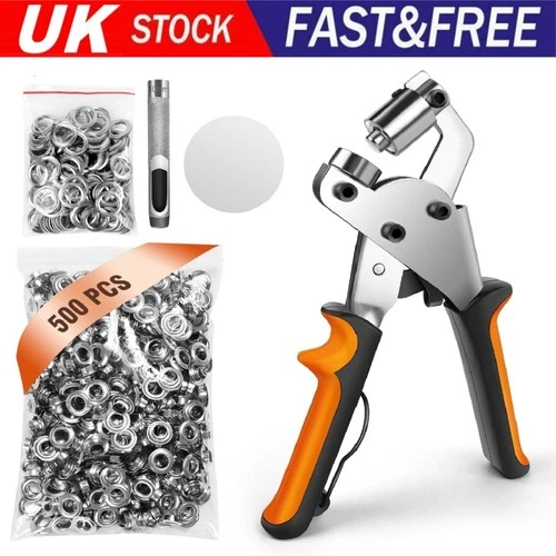 Eyelet Pliers Hole Punch Complete Tool Kit Set With 500pcs Eyelets Craft 10mm UK