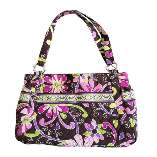Vera Bradley Medium Shoulder Bag Purple Punch Floral Brown Pink Quilted RETIRED